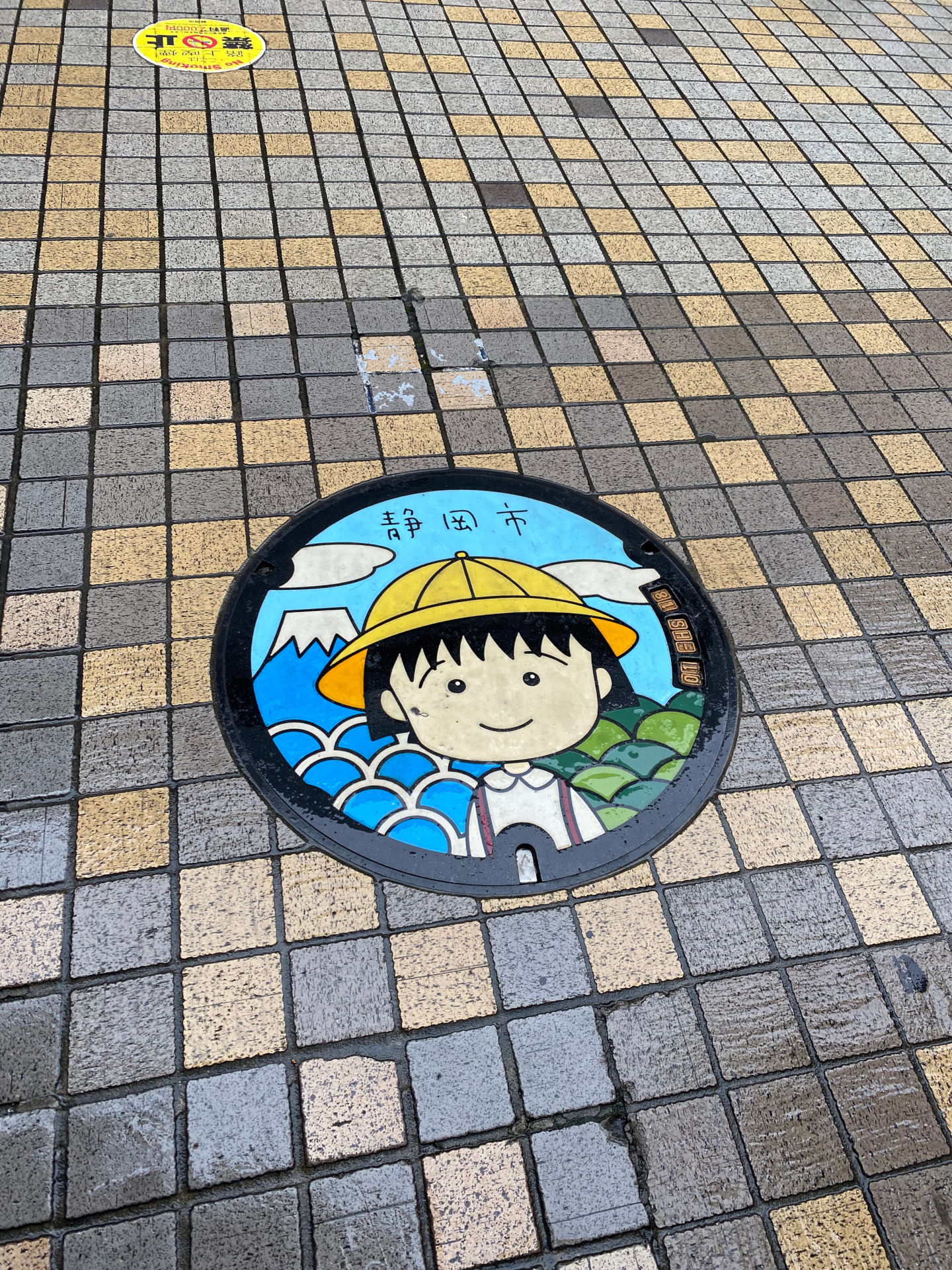 道中で見つけた「ちびまる子ちゃん」マンホール。さくらももこ、そういえば静岡でしたね。